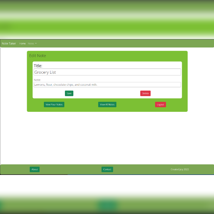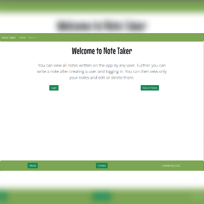 This application takes user input in the form of a note, which is stored securely in a MongoDB database. To create a note, the user must have an account on the app and be signed in. The user may then view all their notes as well as edit and delete them. Further, all the notes written by any user may be viewed publicly without an account on the app. Interaction with the database is facilitated by a custom API created using Express.js. The user interface is minimal, exists only for ease of use interacting with the database API, and is made with the Handlebars template engine.